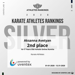 We are delighted to welcome Aksanna Avetyan from Georgia to the Top 10 Karate Players! 4 events, 18 divisions, 10575 points - a great result!